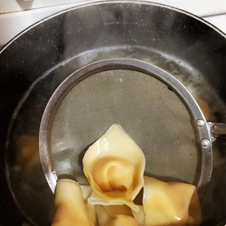 In boiling water, cook the dumplings until they float, strain the dumpling, and reserve.